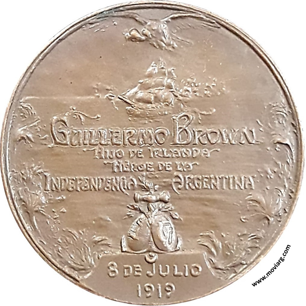 Colección Daniel Paez Anverso: INAUGURACION DEL MONUMENTO / AL ALMTE. BROWN / OBRA DEL ESCULTOR / ALEJANDRO / CHIAPASCOReverso: GUILLERMO BROWN / HIJO DE IRLANDA / HÉROE DE LA / INDEPENDENCIA ARGENTINA / 8 DE JULIO / 1919 Canto: Liso Referencia: | |