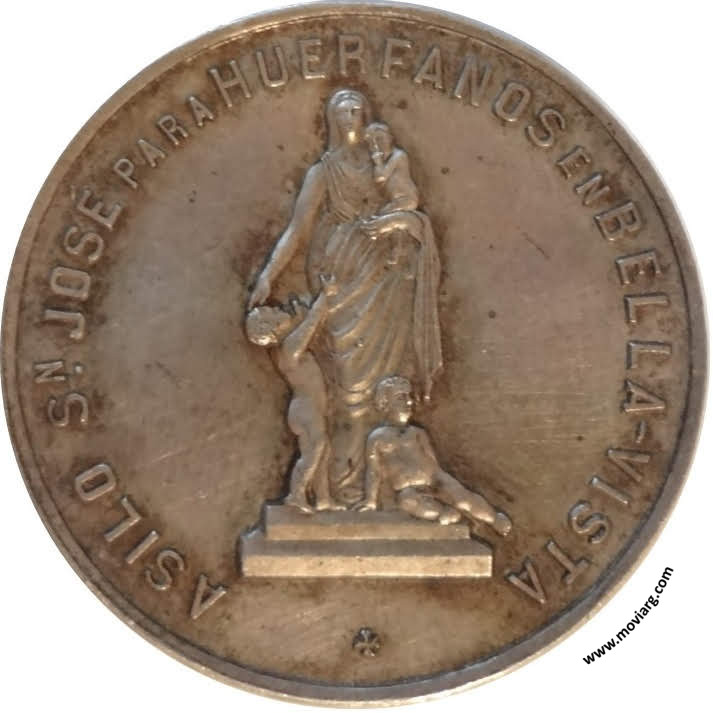 Anverso: ASILO SN. JOSÉ PARA HUERFANOS EN BELLA-VISTA Reverso: INAUGURADO EL 17 DE MARZO 1889 / PROVINCIA / DE / BUENOS AIRES. Firma: GRANDE Referencia: ROSA-/118 FERRARI-156 (RG) | |