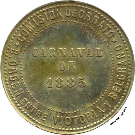 Anverso: Firma: P. I. Reverso: COMISION DE ORNATO / B. ORDEN ENTRE VICTORIA Y BELGRANO / CARNAVAL / DE / 1885 Referencia: | |