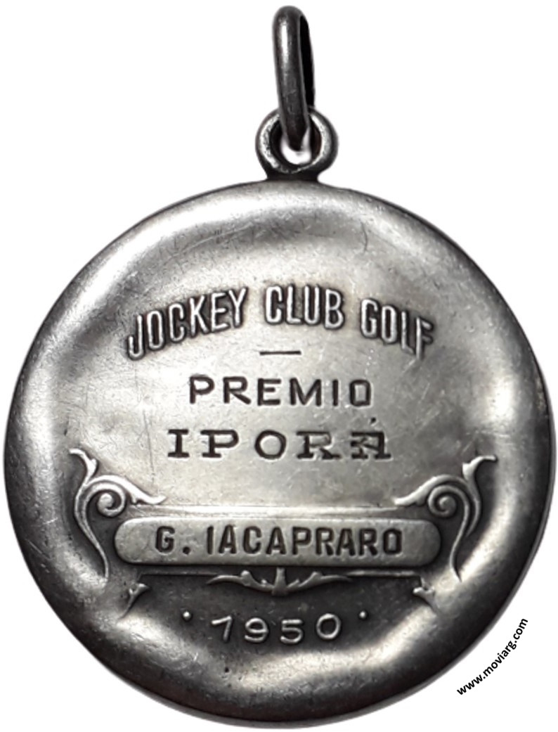 Colección MDS Anverso: Firma: CONSTANTE ROSSIReverso: JOCKEY CLUB GOLF / [ PREMIO ] / [ IPORÁ ] / [ G. IACAPRARO ] / 1950 Canto: Liso. PLATA Referencia: | |