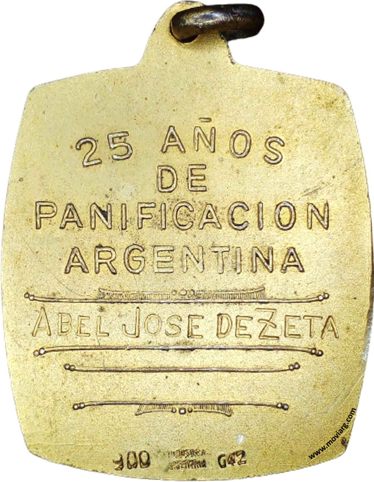 Anverso: 50 AÑOS / PANIFICACION / ARGENTINA / 1913 · OCTUBRE · 1963 Reverso: 25 AÑOS / DE / PANIFICACION / ARGENTINA / [ ABEL JOSE DEZETA ]. Exergo: [ 900 ] / [ INDUSTRIA ] / [ ARGENTINA ] / [ G42 ] Referencia: | |