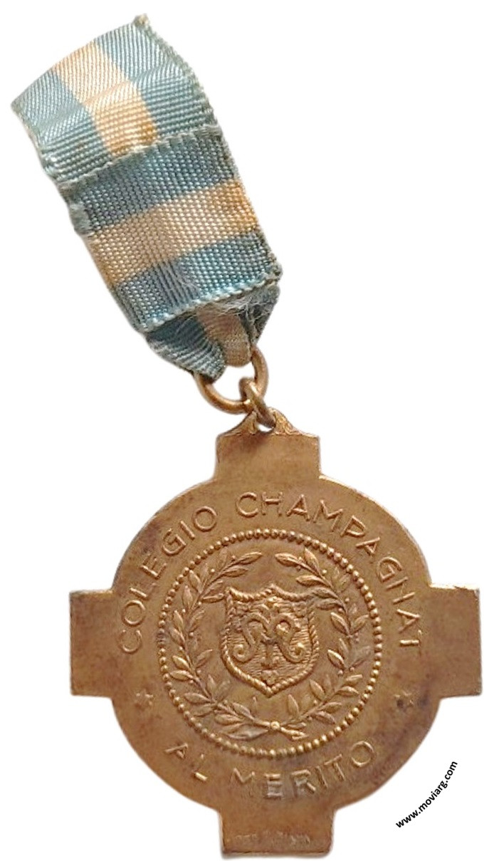 Anverso: Campo: SINITE PARVULOS VENIRE AD ME Reverso: COLEGIO CHAMPAGNAT / AL MERITO. Firma: JOSE F. PIANA Referencia: | |