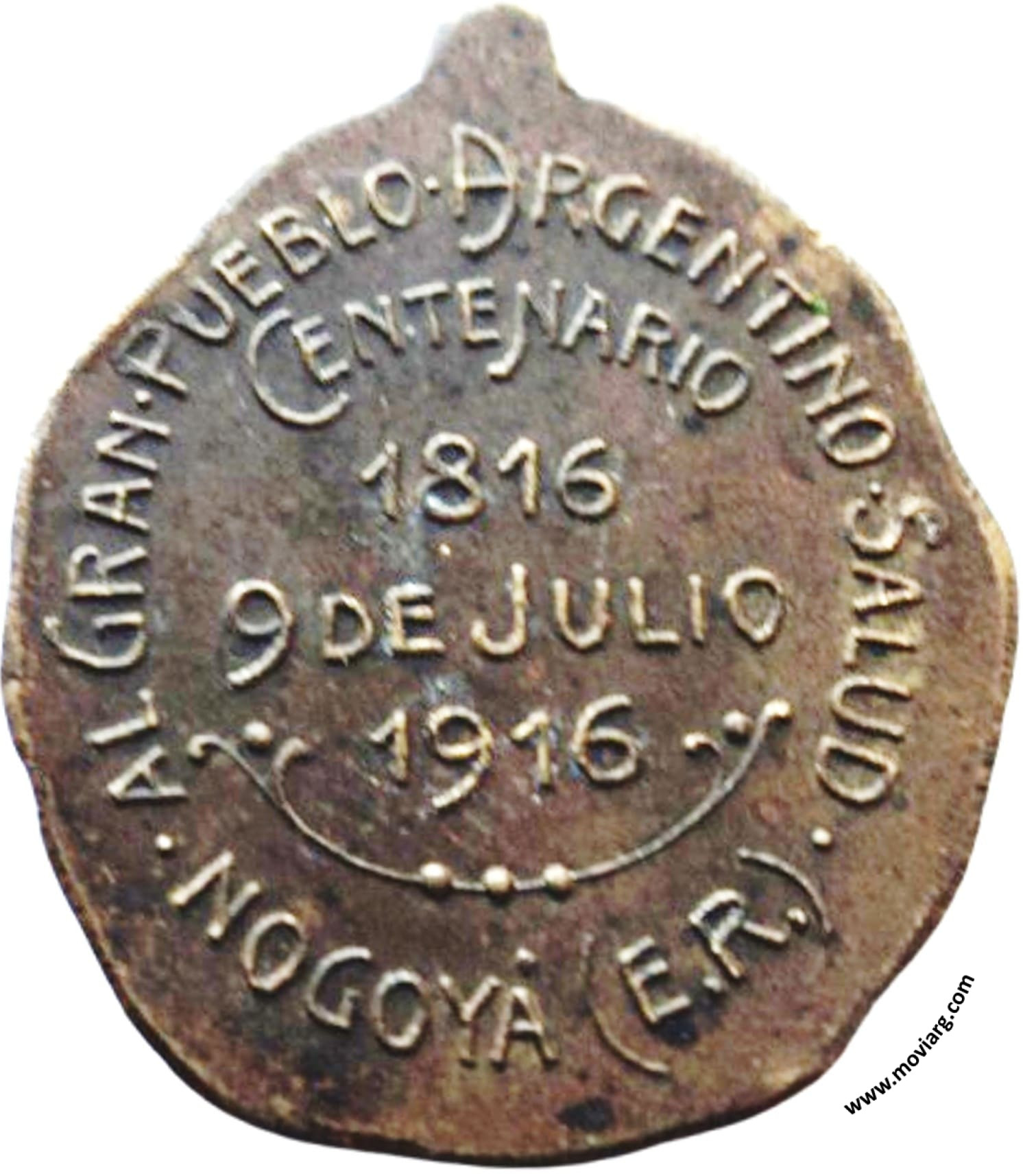 Anverso: Firma: GOTTUZZO Y CA. Reverso: AL GRAN PUEBLO ARGENTINO SALUD / CENTENARIO / 1816 / 9 DE JULIO / 1916 / NOGOYÁ ( E.R. ) Referencia: | |