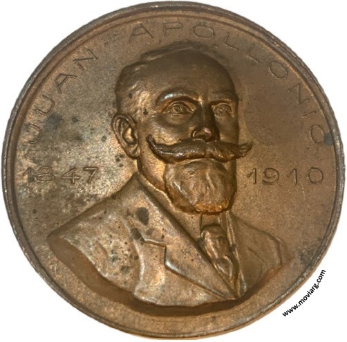 Colección Magnin Anverso: JUAN APOLLONIO / 1847 / 1910Reverso: EL PUEBLO / DE BELLA VISTA (CTES.) / TRIBUTA HOMENAJE / A SU MEMORIA / 30 JULIO 1922. Firma: GOTTUZZO Y PIANA Referencia: | |