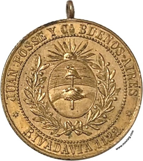 Anverso: JUAN POSSE Y CA. BUENOS AIRES / RIVADAVIA 1122 Reverso: A LOS / FUMADORES / DE / " NEGROS POPULAR " / SALUD ! Canto: Estriado Recto Referencia: | |