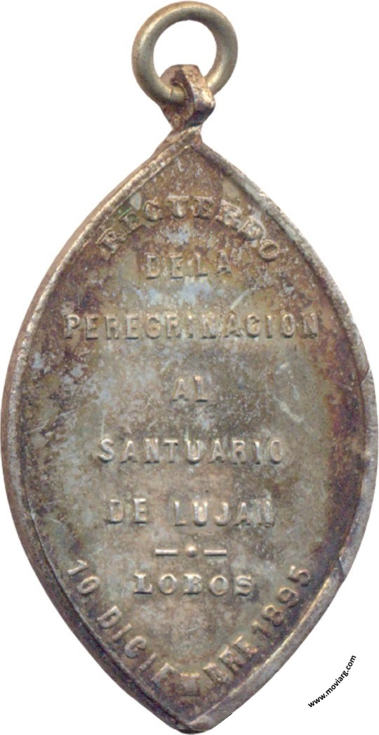 Anverso: MADRE SANTISIMA DE LUJAN / SED NUESTRA PROTECCION Reverso: RECUERDO / DE LA / PEREGRINACION / AL / SANTUARIO / DE LUJAN / LOBOS / 10 DICIEMBRE 1895 Referencia: | |