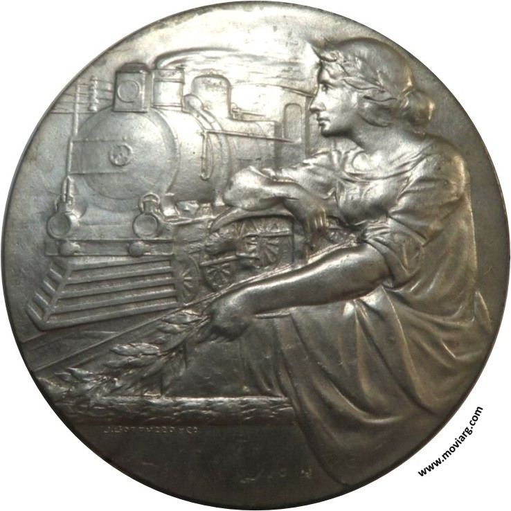 | Año: 1910 Ferrocarriles Metal: Plateado - Peso: 74.6gr - Módulo: 55mm Grabador: Juan Gottuzzo y Ca. | |