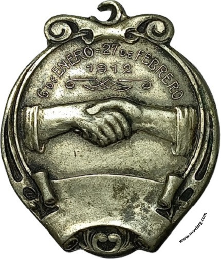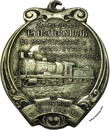 Anverso: SOCIEDAD / "LA FRATERNIDAD" / DE MAQUINISTAS Y / FOGUISTAS DE / LOCOMOTORAS / FUNDADA / EL 20 DE JUNIO 1887. Firma: HORTA Reverso: 6 DE ENERO = 27 DE FEBRERO / 1912 Referencia: | |