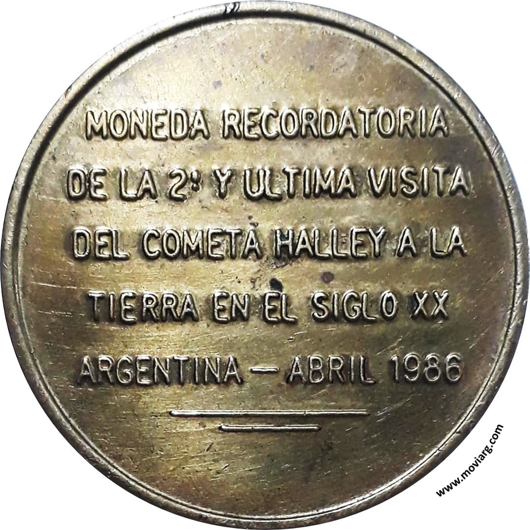 Anverso: HALLEY / 1986 Reverso: MONEDA RECORDATORIA / DE LA 2° Y ULTIMA VISITA / DEL COMETA HALLEY A LA / TIERRA EN EL SIGLO XX / ARGENTINA - ABRIL 1986 Referencia: | |