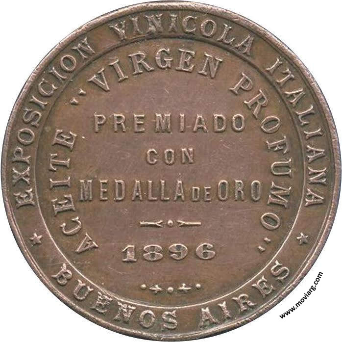 Anverso: Reverso: EXPOSICION VINICOLA ITALIANA / BUENOS AIRES / ACEITE "VIRGEN PROFUMO" / PREMIADO / CON / MEDALLA DE ORO / 1896 Referencia: | |
