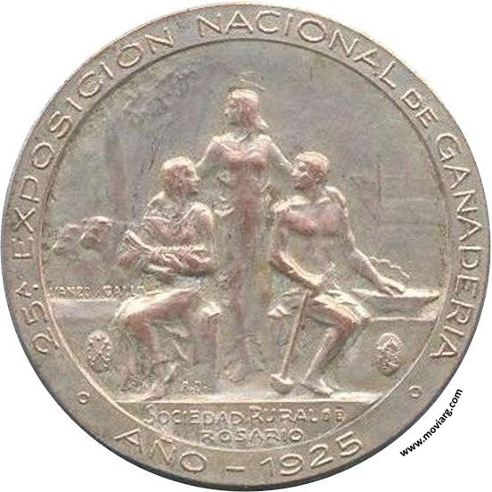 Anverso: 25A. EXPOSICION NACIONAL DE GANADERIA / AÑO 1925 / SOCIEDAD RURAL DE / ROSARIO. Firma: VANZO Y GALLO Reverso: Referencia: | |
