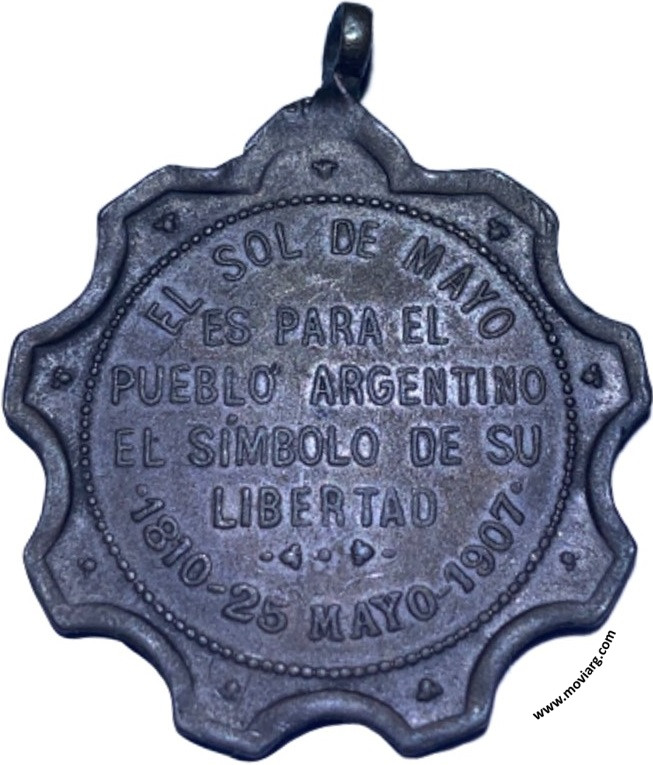 Colección Magnin Anverso: Firma: BELLAGAMBA Y ROSSIReverso: EL SOL DE MAYO / ES PARA EL / PUEBLO ARGENTINO / EL SÍMBOLO DE SU / LIBERTAD / 1810 - 25 MAYO - 1907 Referencia: | |
