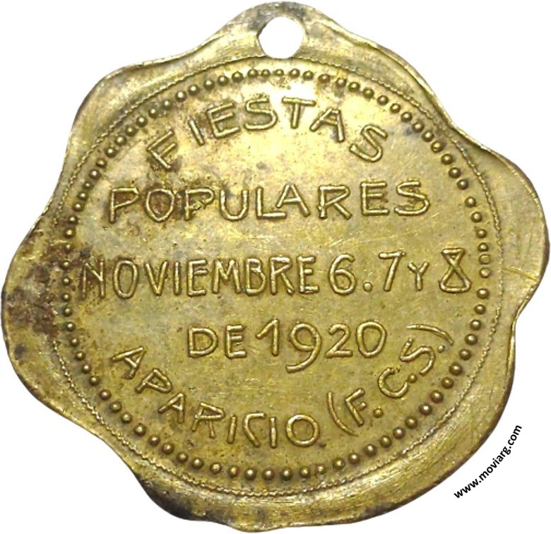 Anverso: PATRIA Y LIBERTAD. Firma: GOTTUZZO Y C. Reverso: FIESTAS / POPULARES / NOVIEMBRE 6. 7 Y 8 / DE 1920 / APARICIO ( F.C.S. ) Referencia: | |
