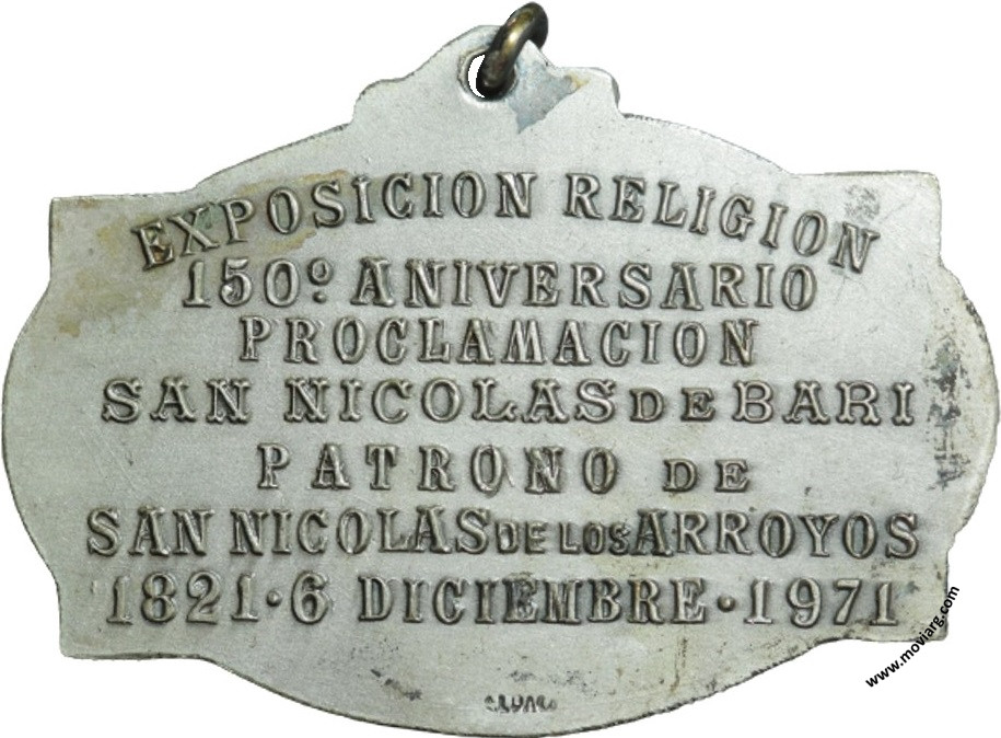 Colección @parryyanumismatico Anverso: MUSEO Y ARCHIVO / HISTORICO MUNICIPAL. Firma: O. GALLOReverso: EXPOSICION RELIGION / 150° ANIVERSARIO / PROCLAMACION / SAN NICOLAS DE BARI / PATRONO DE / SAN NICOLAS DE LOS ARROYOS / 1821 · 6 DICIEMBRE · 1971. Exergo: [ ALPACA ] Referencia: | |