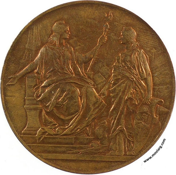 | Año: 1889 Exposiciones Metal: Bronce - Peso: 61.48gr - Módulo: 50.08mm - Espesor: 3.93mm - Rotación: 12hrs Grabador: Daniel Dupuis | |