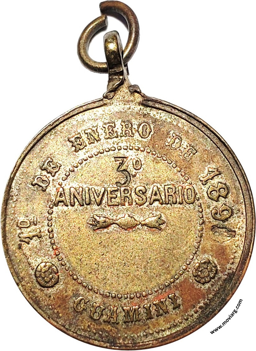 | Año: 1891 Romerías Metal: Bronce - Peso: 8.86gr - Módulo: 27.66mm - Espesor: 2.21mm - Rotación: 12hrs Grabador: Podestá y Hno. | |