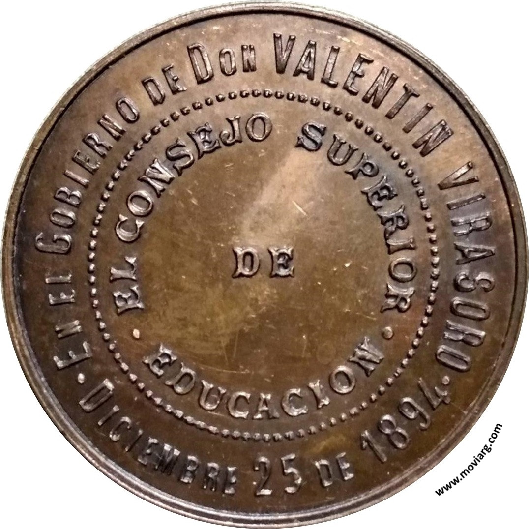 Colección @parryyanumismatico Anverso: MUSEO DE CORRIENTES / INAUGURACIONReverso: EN EL GOBIERNO DE DON VALENTIN VIRASORO / DICIEMBRE 25 DE 1894 / EL CONSEJO SUPERIOR / DE / EDUCACION Referencia: | |