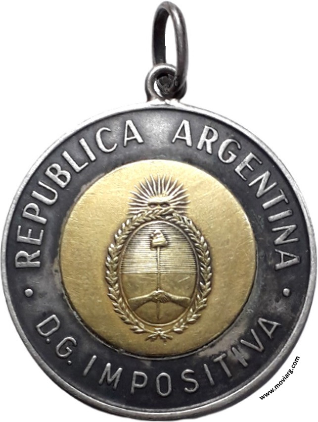 Anverso: REPUBLICA ARGENTINA / D. G. IMPOSITIVA Reverso: RECONOCIMIENTO / POR / [ 25 ] / AÑOS DE SERVICIO / [ N. E. RODRIGUEZ ] / [ 1978 ]. Exergo: [ 900 ] / [ 18K ] Referencia: | |