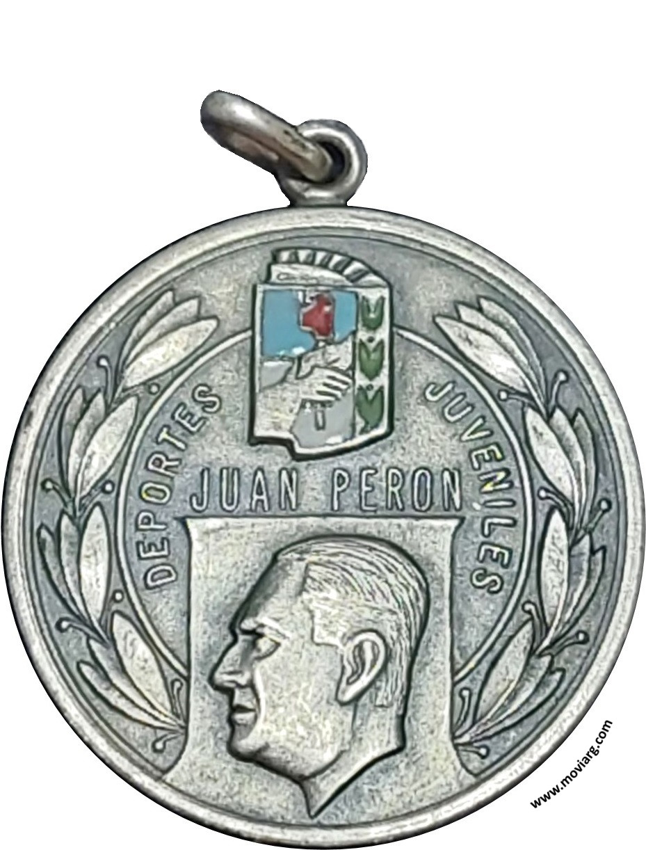 Anverso: DEPORTES JUVENILES / JUAN PERON Reverso: CAMPEONATO ARGENTINO / DE FUTBOL JUVENIL / " JUAN PERON " / [ MARCOS CADEIKA ] Referencia: | |