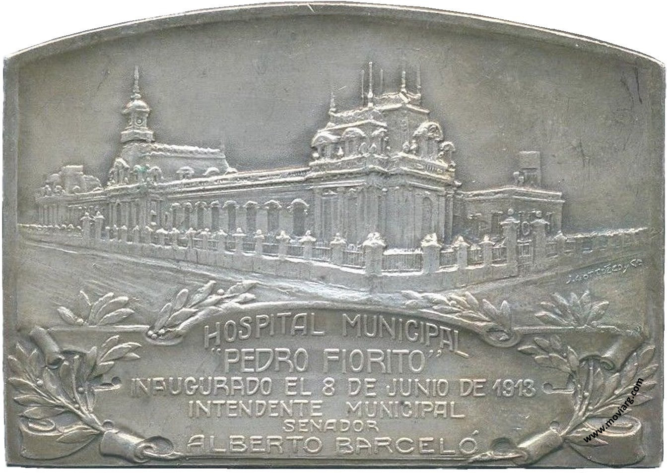 Anverso: CARIDAD Reverso: HOSPITAL MUNICIPAL / " PEDRO FIORITO " / INAUGURADO EL 8 DE JUNIO DE 1913 / INTENDENTE MUNICPAL / SENADOR / ALBERTO BARCELÓ. Firma: GOTTUZZO Y CA. Canto: Liso. PLATA Referencia: | |