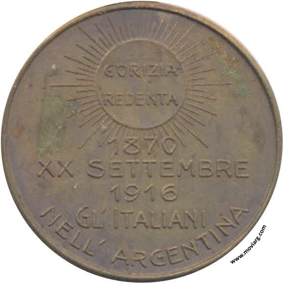 Anverso: PATRIA. Firma: GOTTUZZO Y CA. Reverso: 1870 / XX SETTEMBRE / 1916 / GL' ITALIANI / NELL' ARGENTINA. Campo: GORIZIA / REDENTA Referencia: | |