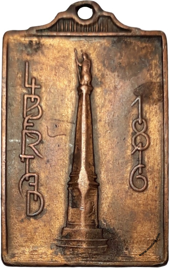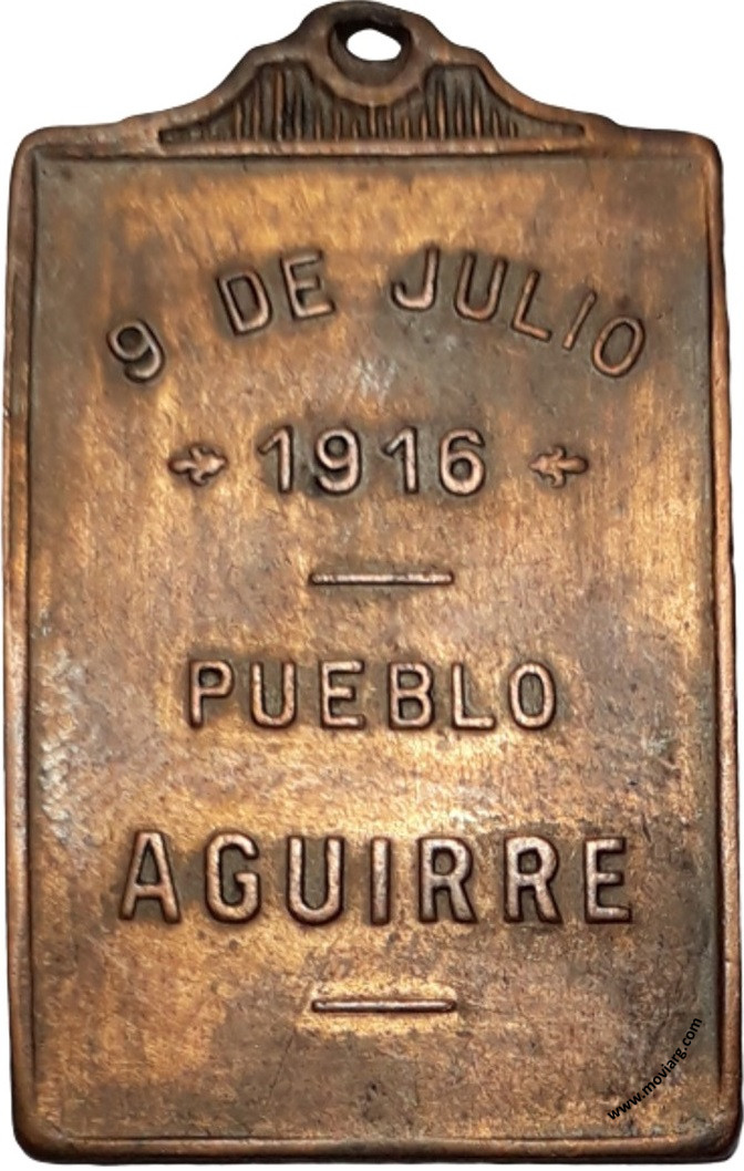 Colección MDS Anverso: LIBERTAD / 1816. Firma: (???)Reverso: 9 DE JULIO / 1916 / PUEBLO / AGUIRRE Referencia: | |