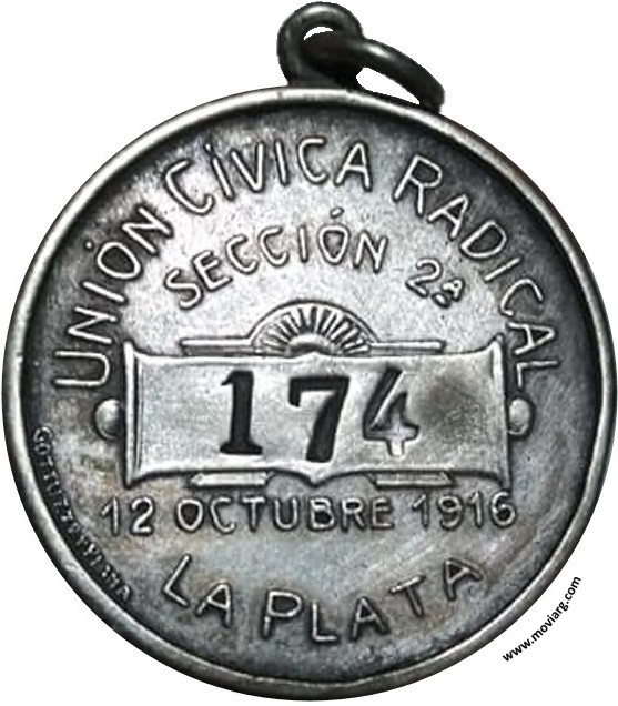 Anverso: Reverso: UNIÓN CÍVICA RADICAL / SECCIÓN 2A. / LA PLATA / [ 174 ] / 12 OCTUBRE 1916. Firma: GOTTUZZO Y PIANA Referencia: | |