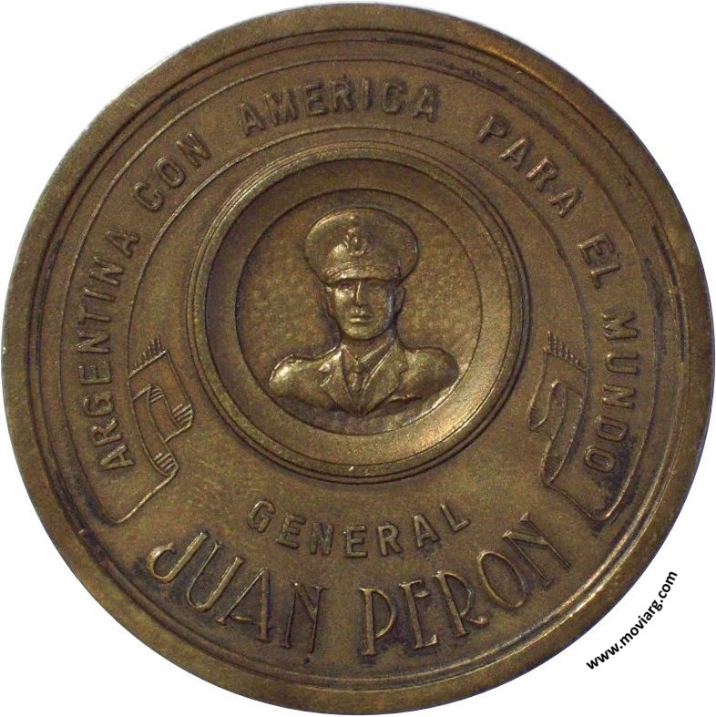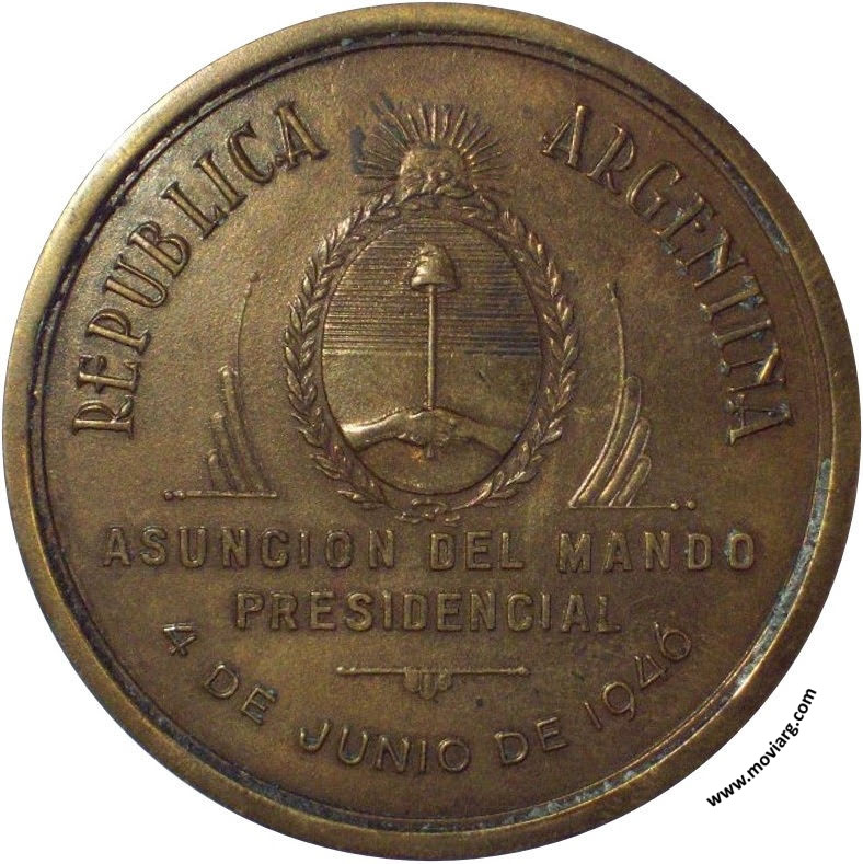 Anverso: ARGENTINA CON AMERICA PARA EL MUNDO / GENERAL / JUAN PERON Reverso: REPUBLICA ARGENTINA / ASUNCION DEL MANDO / PRESIDENCIAL / 4 DE JUNIO DE 1946 Referencia: | |