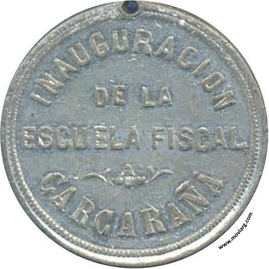 Anverso: INAUGURACION / DE LA / ESCUELA FISCAL / CARCARAÑA Reverso: 25 / AGOSTO / 1907. Firma: CACCIA Referencia: FERRARI-111 (SC) | |