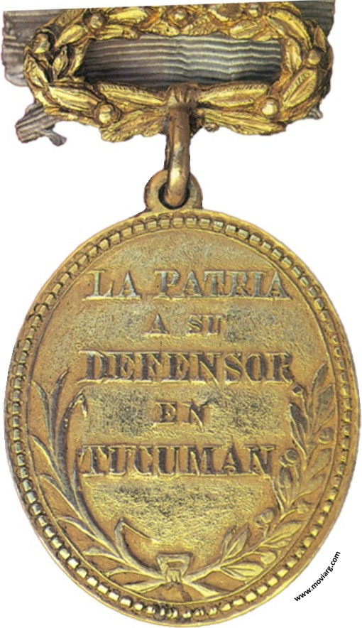 Museo Histórico "Nicolás Avellaneda" foto de la Junta de Estudios Históricos de Tucumán Anverso: LA PATRIA / A SU / DEFENSOR / EN / TUCUMANReverso: (Desconocido, seguramente liso) Referencia: | |