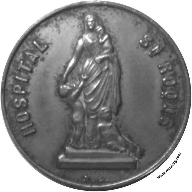 Anverso: HOSPITAL / SN. ROQUE. Firma: R.G. Reverso: FUNDADO / EL 12 DE / AGOSTO / DE 1873 / DOLORES Referencia: FERRARI-19 (RG) | |