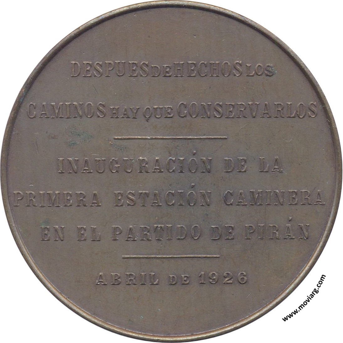 Anverso: REPÚBLICA ARGENTINA / PROVINCIA DE BUENOS AIRES. Firma: GOTTUZZO Y PIANA Reverso: DESPUES DE HECHOS LOS / CAMINOS HAY QUE CONSERVARLOS / INAUGURACIÓN DE LA / PRIMERA ESTACIÓN CAMINERA / EN EL PARTIDO DE PIRÁN / ABRIL DE 1926 Referencia: | |