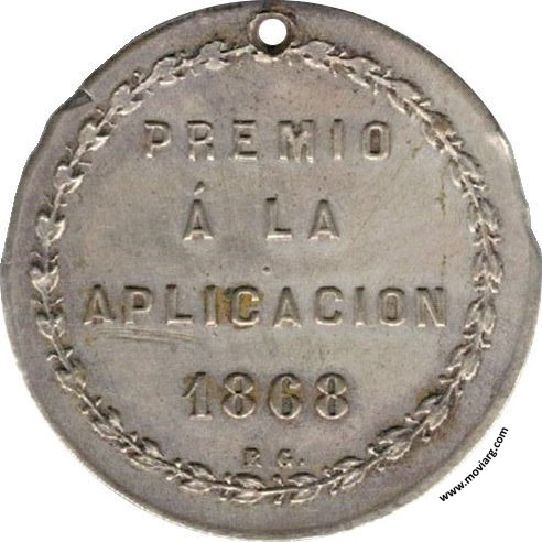 Anverso: MUNICIPALIDAD DE BUENOS AIRES Reverso: PREMIO / Á LA / APLICACION / 1868. Firma: R. G Referencia: | |
