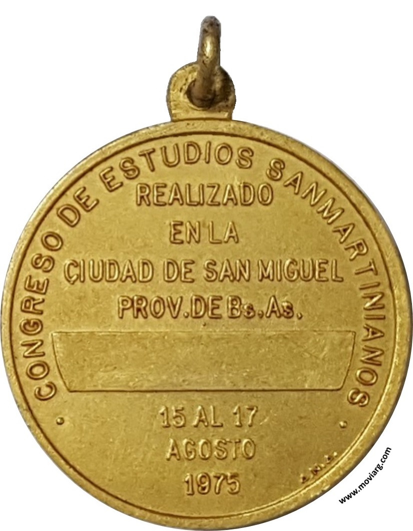 Anverso: ASOCIACION CULTURAL SANMARTINIANA / GENERAL SARMIENTO. Exergo: A.N.A. Reverso: CONGRESO DE ESTUDIOS SANMATINIANOS / REALIZADO / EN LA / CIUDAD DE SAN MIGUEL / PROV. DE BS. AS. / 15 AL 17 / AGOSTO / 1975. Exergo: A.N.A. Referencia: | |