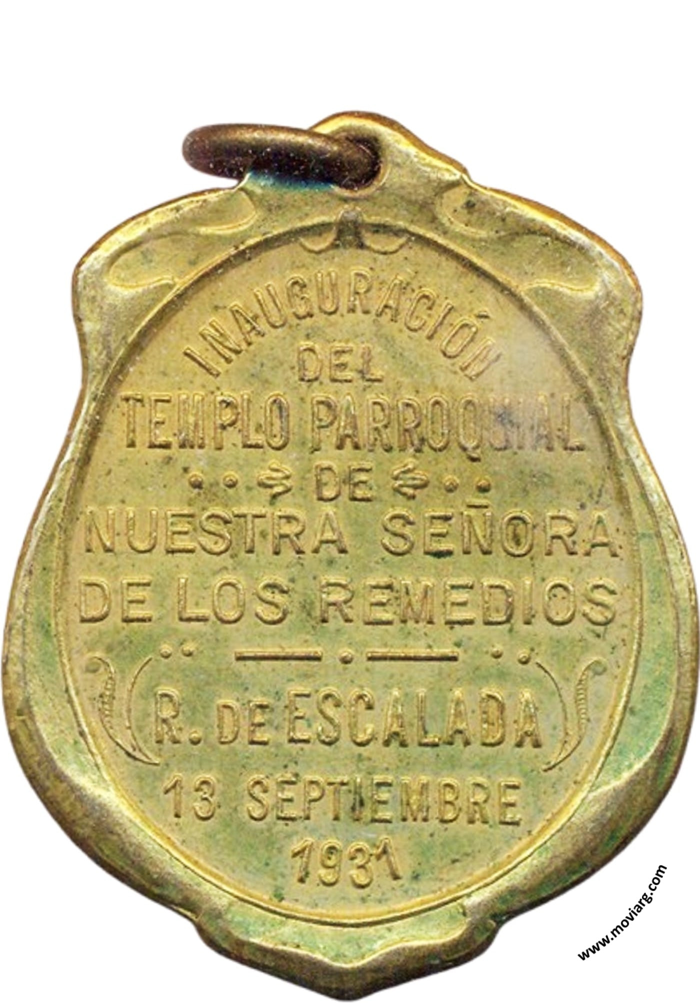 Anverso: NUESTRA SEÑORA DE LOS REMEDIOS. Firma: CONSTANTE ROSSI Reverso: INAUGURACIÓN / DEL / TEMPLO PARROQUIAL / DE / NUESTRA SEÑORA / DE LOS REMEDIOS / R. DE ESCALADA / 13 SEPTIEMBRE / 1931 Referencia: | |
