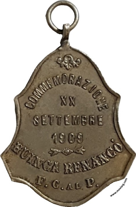 Anverso: Firma: C. Y AF. ROSSI Reverso: COMMEMORAZIONE / XX / SETTEMBRE / 1909 / HUINCA RENANCÓ / F. C. AL P. Referencia: | |