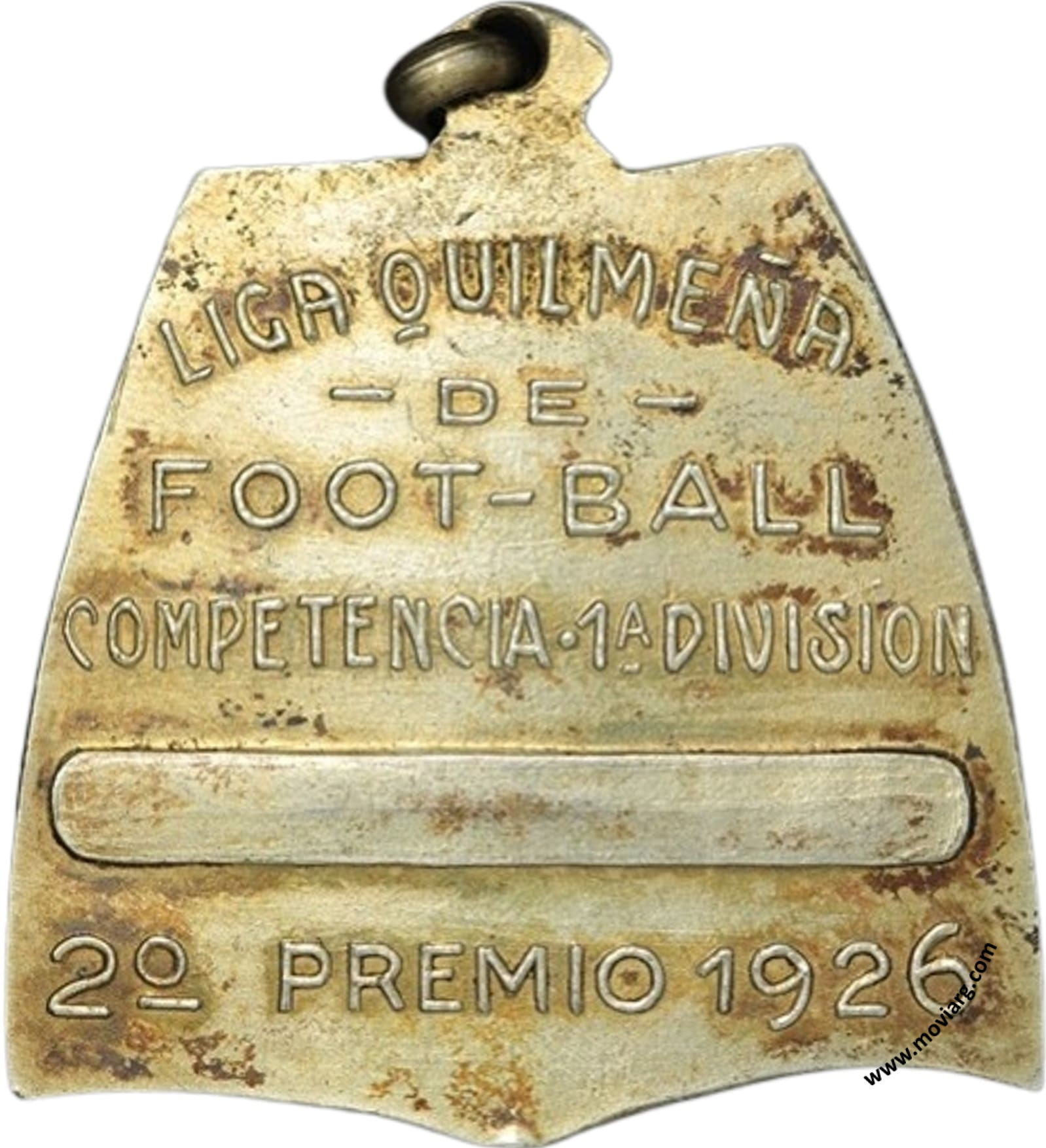 Anverso: Firma: HORTA Reverso: LIGA QUILMEÑA / DE / FOOT - BALL / COMPETENCIA 1. DIVISION / 2° PREMIO 1926 Referencia: | |
