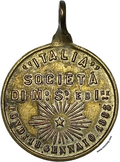 | Año: 1890 Sociedad Italiana Metal: Cobre - Peso: 5.18gr - Módulo: 23.83mm - Espesor: 1.68mm - Rotación: 12hrs Grabador: (Rosario Grande) | |