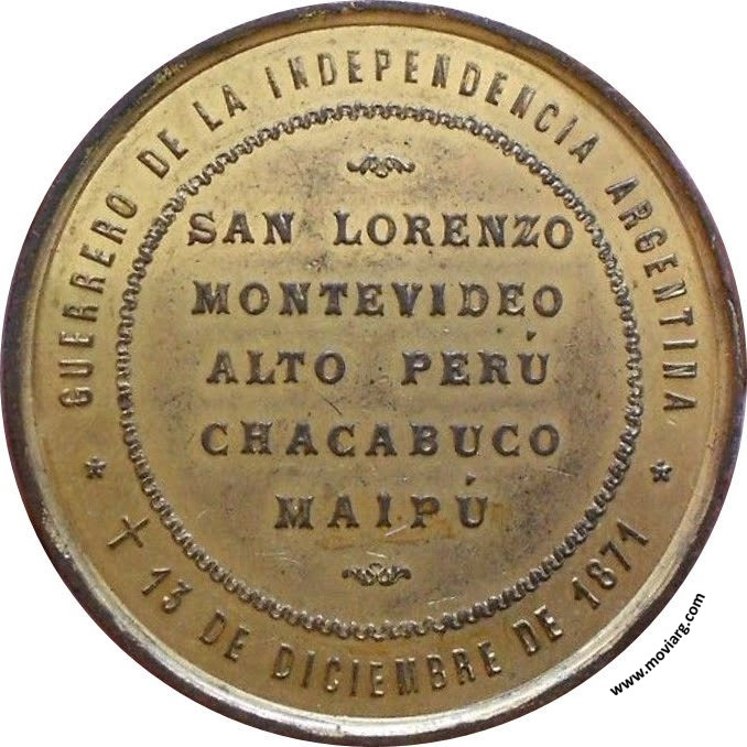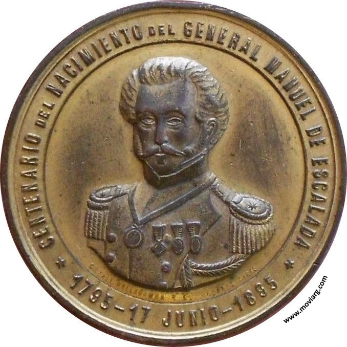Anverso: CENTENARIO DEL NACIMIENTO DEL GENERAL MANUEL DE ESCALADA / 1795 - 17 JUNIO - 1895. Firma: ORZALI BELLAGAMBA Y C. BUENOS AIRES Reverso: GUERRERO DE LA INDEPENDENCIA ARGENTINA / SAN LORENZO / MONTEVIDEO / ALTO PERÚ / CHACABUCO / MAIPÚ / 13 DE DICIEMBRE DE 1871 Referencia: | |