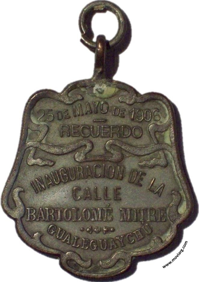 Anverso: Firma: BELLAGAMBA Y ROSSI Reverso: 25 DE MAYO DE 1906 / RECUERDO / INAUGURACION DE LA / CALLE / BARTOLOMÉ MITRE / GUALEGUAYCHÚ Referencia: | |