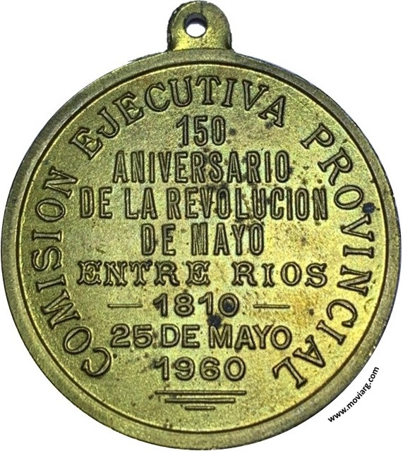 Colección Magnin Anverso: OID / MORTALES / EL GRITO / SAGRADO...Reverso: COMISION EJECUTIVA PROVINCIAL / 150 / ANIVERSARIO / DE LA REVOLUCION / DE MAYO / ENTRE RIOS / 1810 / 25 DE MAYO / 1960 Referencia: | |