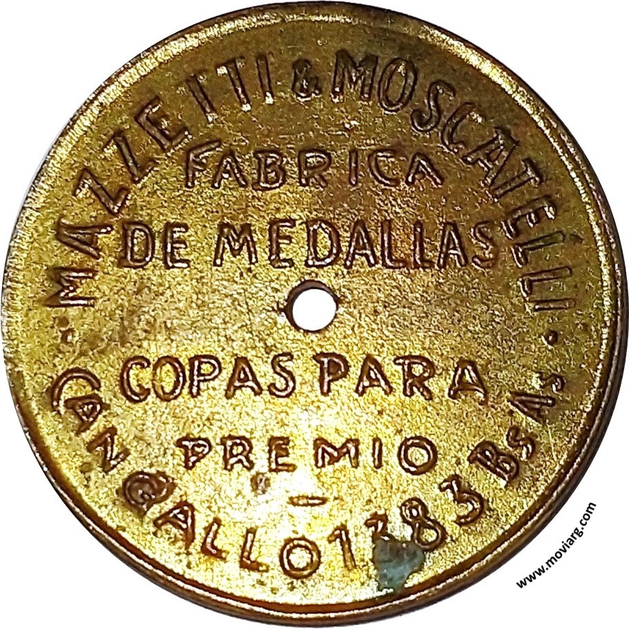 Anverso: MAZZETTI & MOSCATELLI / FABRICA / DE MEDALLAS / COPAS PARA / PREMIO / CANGALLO 1383 BS. AS. Reverso: Referencia: | |