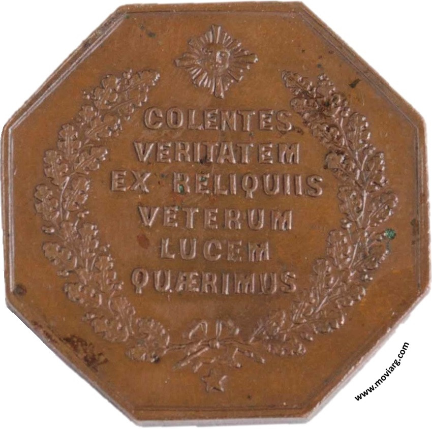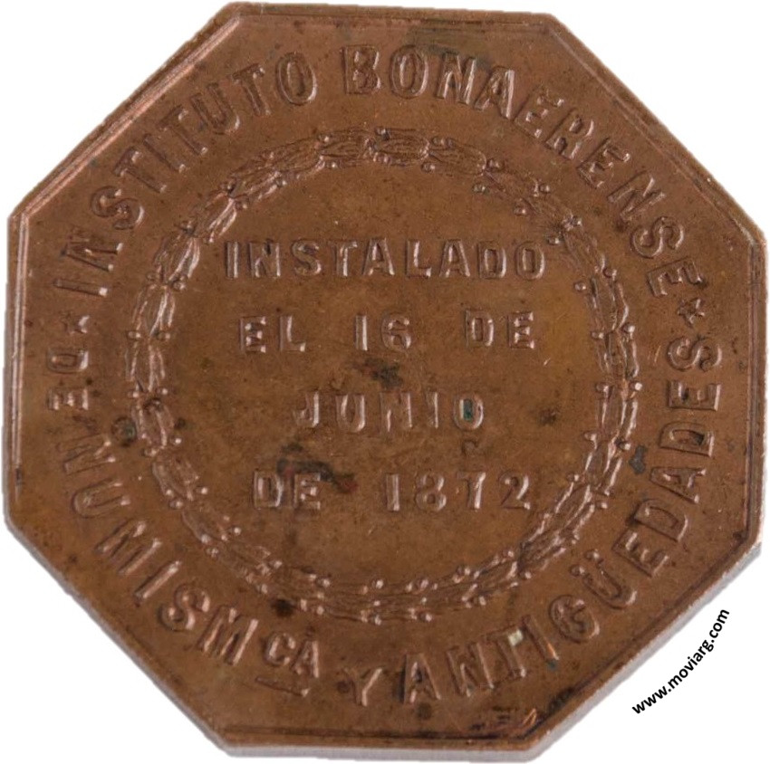 Anverso: INSTITUTO BONAERENSE / DE NUMISMCA. Y ANTIGÜEDADES / INSTALADO / EL 16 DE / JUNIO / DE 1872 Reverso: COLENTES / VERITATEM / EX RELIQUIIS / VETERUM / LUCEM / QUÆRIMUS Referencia: | |