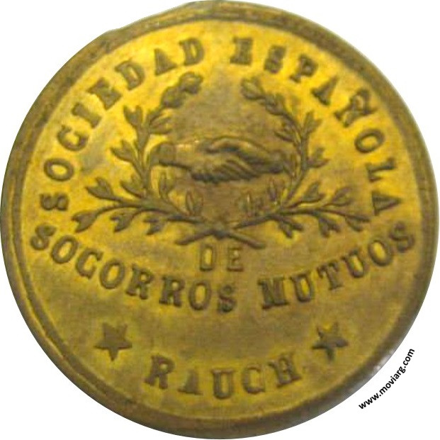 Colección Edgardo Muela Anverso: SOCIEDAD ESPAÑOLA / DE / SOCORROS MUTUOS / RAUCHReverso: 7° / FESTIVAL / 1889 Referencia: | |