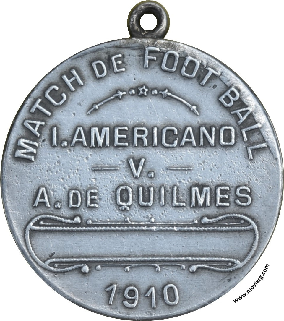 Anverso: Reverso: MATCH DE FOOT BALL / I. AMERICANO / V. / A. DE QUILMES / 1910 Referencia: | |