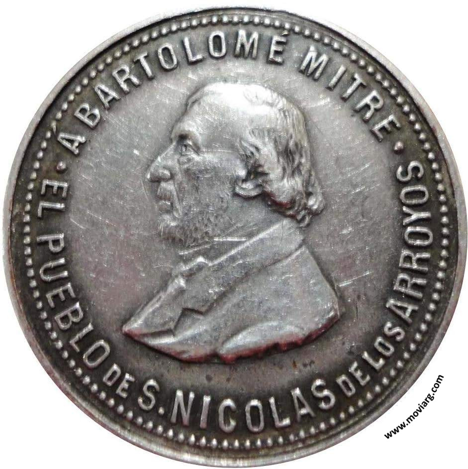 Anverso: A BARTOLOME MITRE / EL PUEBLO DE S. NICOLAS DE LOS ARROYOS Reverso: EN EL / OCTOGESIMO / ANIVERSARIO / DE / SU NATALICIO / 26 DE JUNIO / 1910 Referencia: ROSA-32 (M80) | |