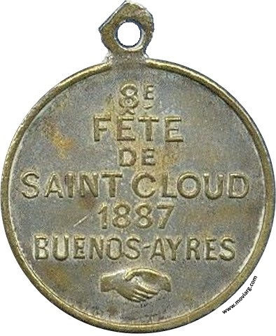 Anverso: SOCIÉTÉ / PHILANTHROPIQUE / FRANÇAISE / DU / RIO DE LA PLATA Reverso: 8E. / FÊTE / DE / SAINT CLOUD / 1887 / BUENOS-AYRES Referencia: | |