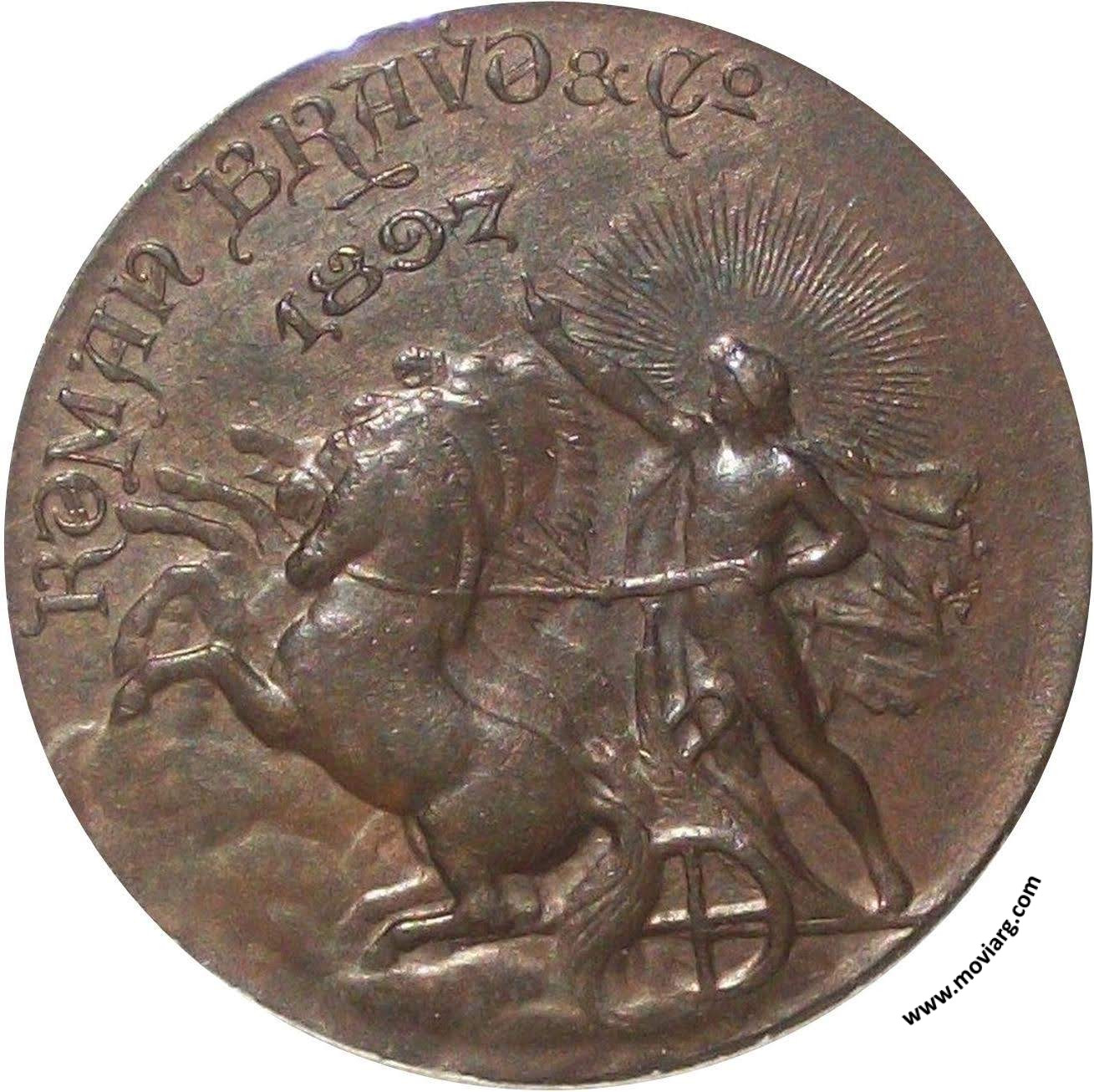 | Año: 1897 Publicidad Metal: Cobre - Módulo: 30mm Grabador: (Juan Gottuzzo y Costa) | |