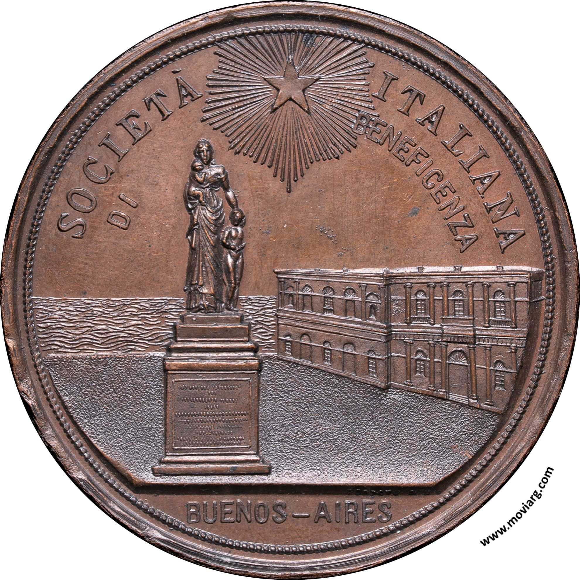 rp numis Anverso: SOCIETÁ / ITALIANA / DI / BENEFICENZA / BUENOS-AIRES. Firma: PODESTA & H.Reverso: Referencia: | |