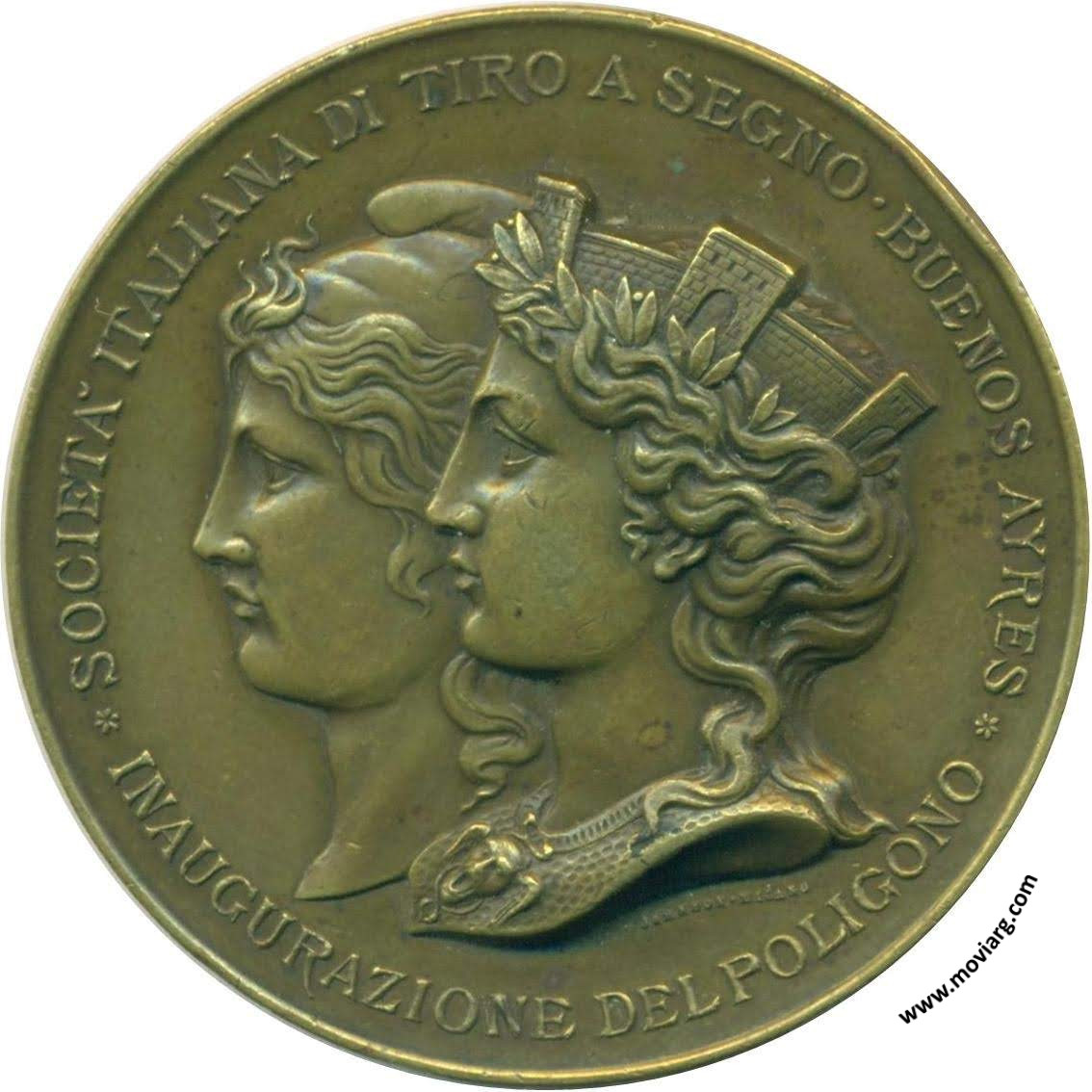 Anverso: SOCIETA ITALIANA DI TIRO A SEGNO · BUENOS AYRES / INAUGURAZIONE DEL POLIGONO. Firma: JOHNSON · MILANO Reverso: GIVBILEO / DELLA / PATRIA / XX SETTEMBRE / MDCCCXCV. Campo: ROMA Referencia: BURZIO-4610 | |